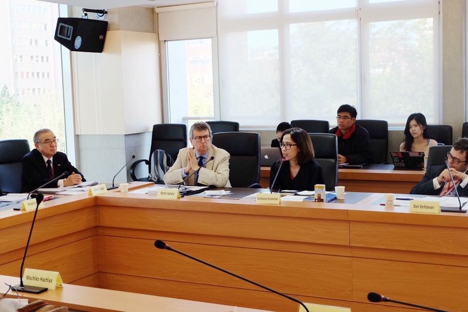 Natthanan Kunnmas, Jean Monnet Chair, participated in a 10 minutes roundtable discussion on “Regionalism and and Inter-regionalism” at the International Conference Hall of College of Social Sciences, National Taiwan University, Taipei City, hosted by European Union Centre in Taiwan (EUTW). (Pictured with Prof. Toshiro Tanaka, Jean Monnet Chair (ad personam), European Union Institute in Japan (EUIJ-Tokyo), Prof. Martin Holland, Jean Monnet Chair (ad personam), Director of National Research on Europe (NCRE))