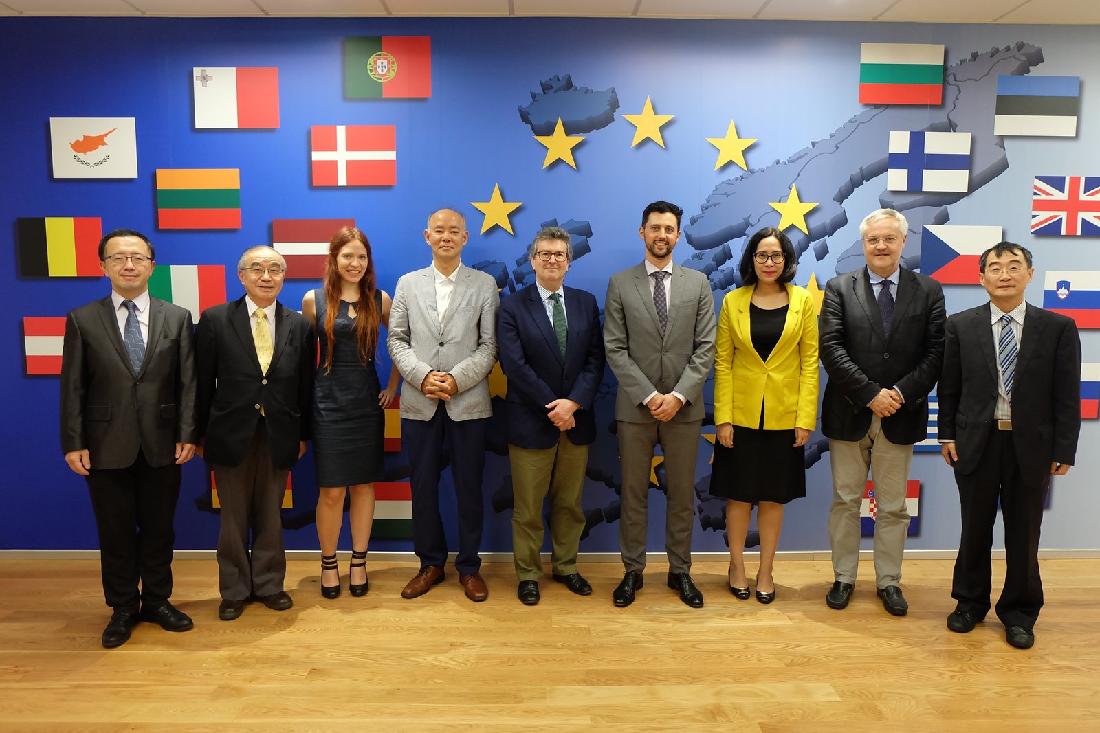 Photo (from the left): Professor Hungdah Su / Professor Toshiro Tanaka / Julia Kleinewiese / Professor Sunghoon Park / Professor Martin Holland / Dr Colin Steinbach / Professor Natthanan Kunnamas / Professor Paulo Canelas / Professor Ding Chun
